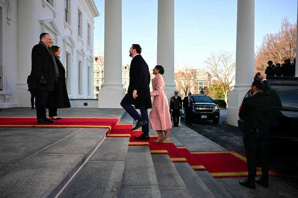 94. (L-R) Usha Vance, US Second Gentleman Douglas Emhoff, Vice President Kamala Harris and Vice President-elect JD Vance