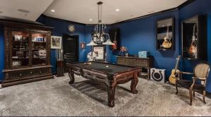 For sports enthusiasts, the property includes an indoor basketball court adorned with Colts branding.