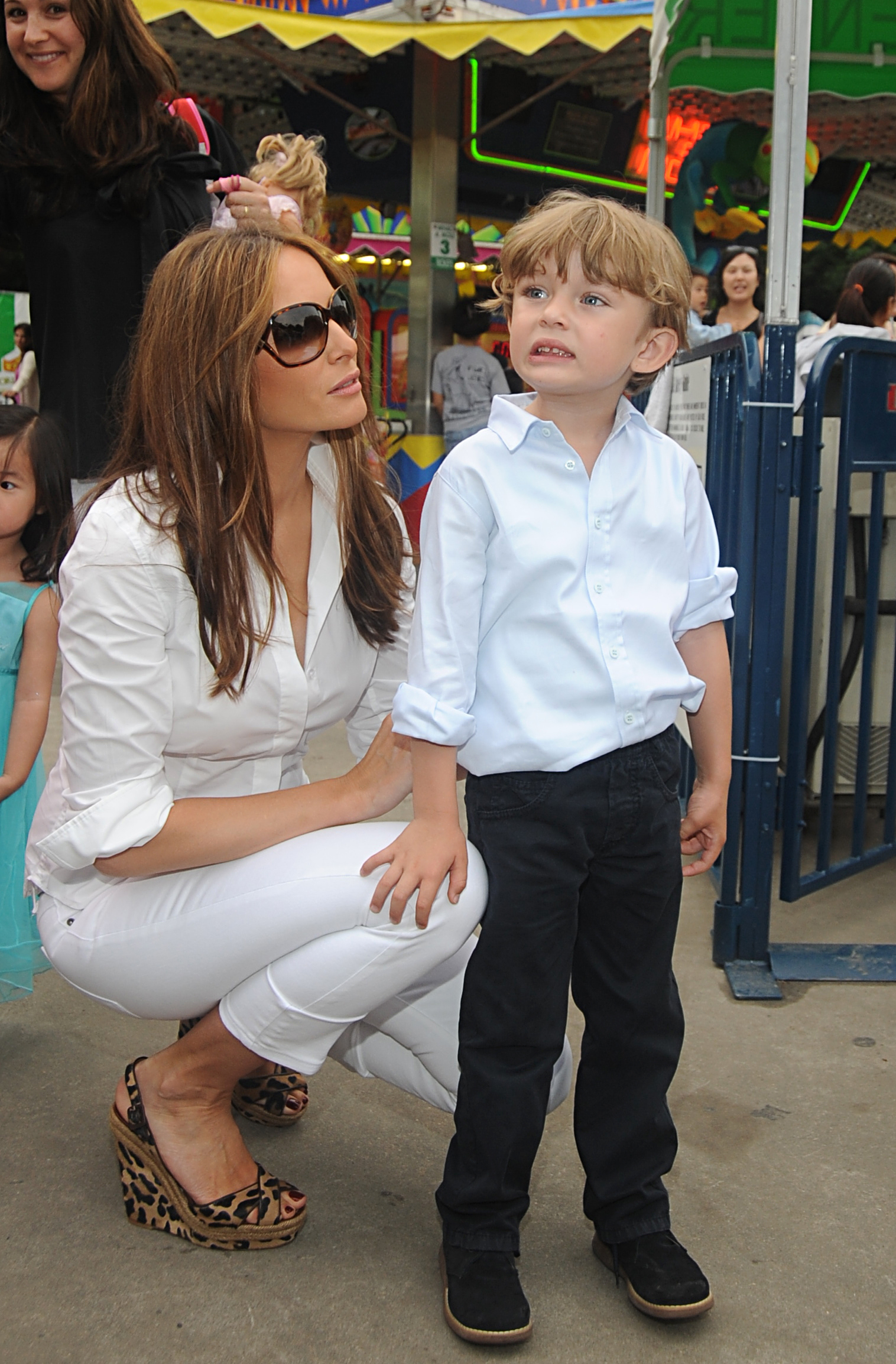 Melania Knauss Trump (L) and her son Barron Trump attend the 3rd annual Baby Buggy Bedtime Bash at Central Park’s Wollman Rink in New York City. (Photo by Fairchild Archive/Penske Media via Getty Images)